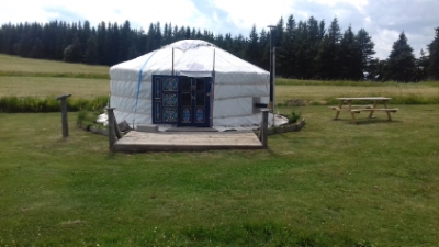 Régine et Thierry proposent de l'éco-hébergement en yourte (tente traditionnelle mongole) ou en kotas finlandais : 1 yourte et 2 kotas. Entre le Mont Gerbier de Jonc et le Lac d’Issarlès vous pourrez assister à de magnifiques couchers et levers de soleil.